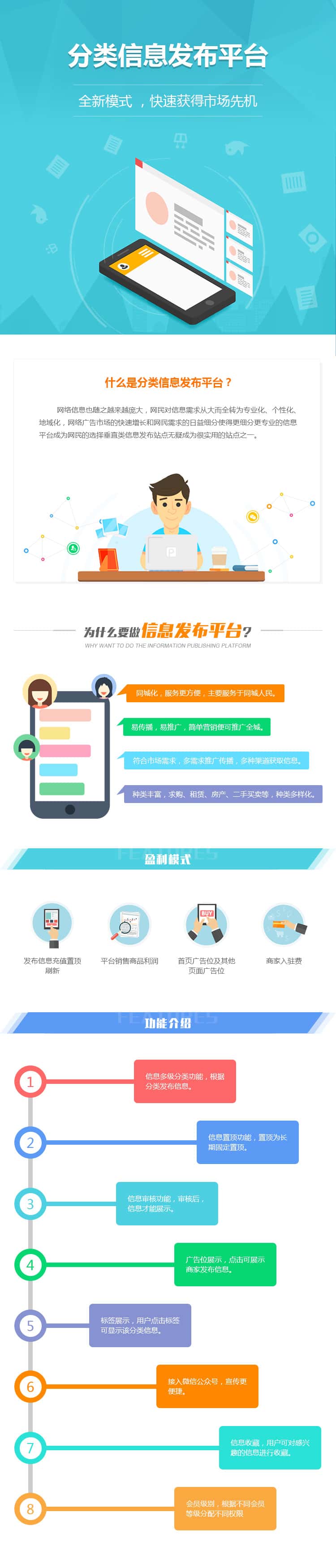 1. 信息多级分类功能,根据分类发布信息。