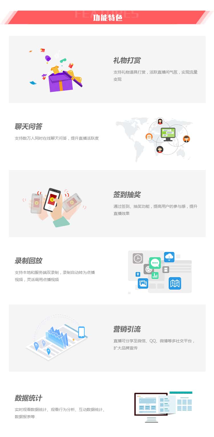 XK直播平台,针对教育、政企、互联网及移动互联网等行业推出多种解决方案,支持直播带货、活动抽奖、点赞互动、礼物打赏等特色功能,助力企业快速部署直播业务。